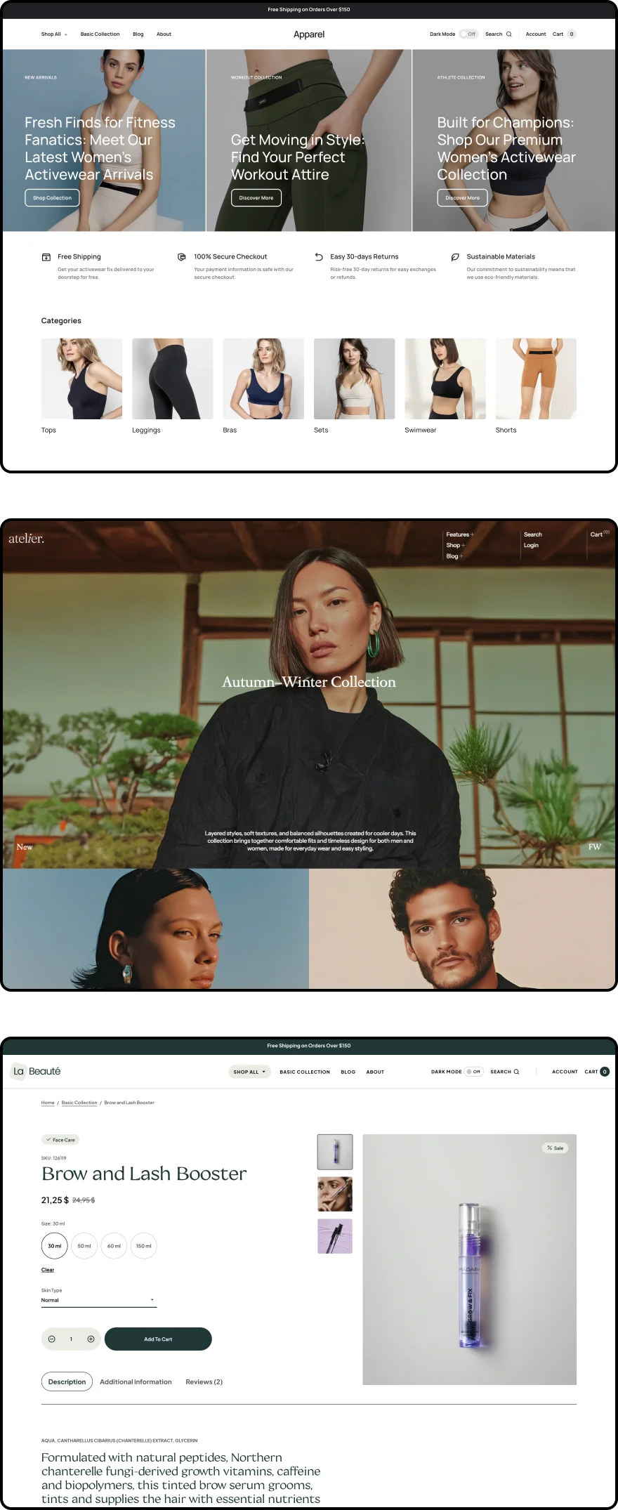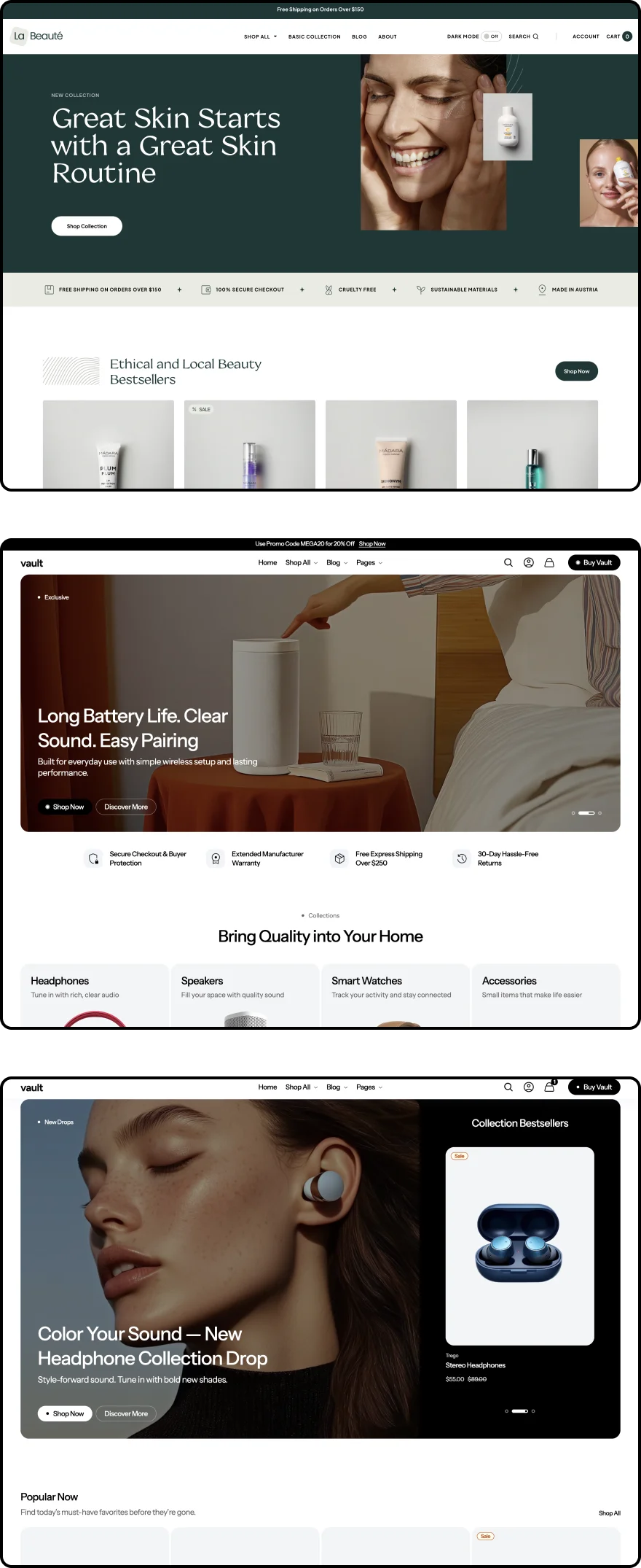 Minimalistic themes focused on speed and mobile optimization to tell your brand story and make selling simpler.